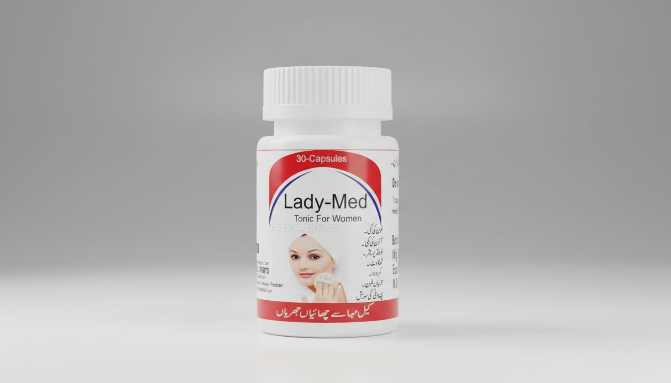 Lady-Med Capsules are a specially formulated tonic for women, designed to support overall health and vitality. It contains a blend of Malabar Kino, Iron, Lead (in traditional medicinal form), Saffron, and Antimony Nig, which help improve iron deficiency, relieve back pain, low blood pressure, and general weakness. This medicine supports strength, energy, and well-being in women.